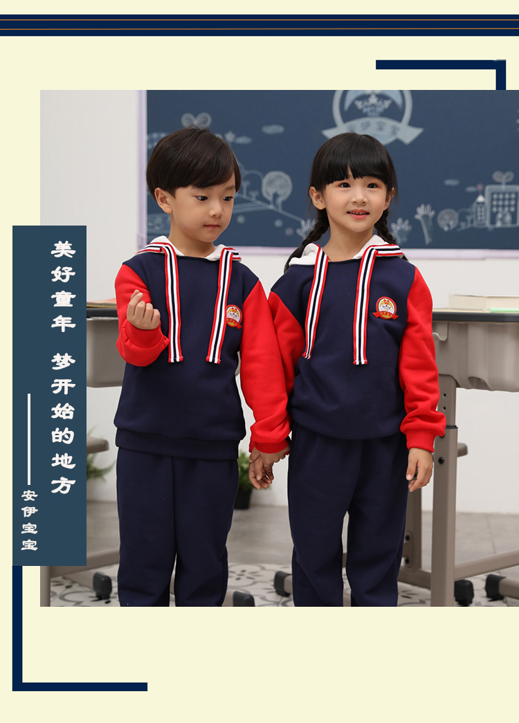 广州市菁璐童装有限公司专业从事10余年,旗下有安伊宝宝品牌,集中幼儿园园服,小学生校服 书包,幼儿园床上用品及幼师服的研发设计。定制上等优质面料,确保园服不缩水、不变形、不起球、抗皱性强,厂内配备的面料检验设备我们提供专业的园服校服定制,可根据客户的个性化需求设计生产,欢迎广大客户来图来样定制。