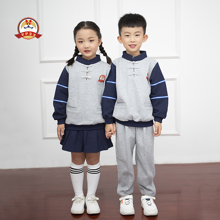 安伊宝宝,更注重工艺的品质,风格的独特,材质的讲究,采用优良环保面料,面料选用符合新国标GB/T 31888合格检测要求,在不失校服干净整简洁之外,成功的将东方底蕴与西方神韵融合;展示孩子的活泼的天性、无忧无虑的快乐童年色彩,拒绝大众化,追求细节品质处的独立美学。校服作为童装服饰重要的风格品类,在日常的学习生活中占有不可或缺的重要地位。