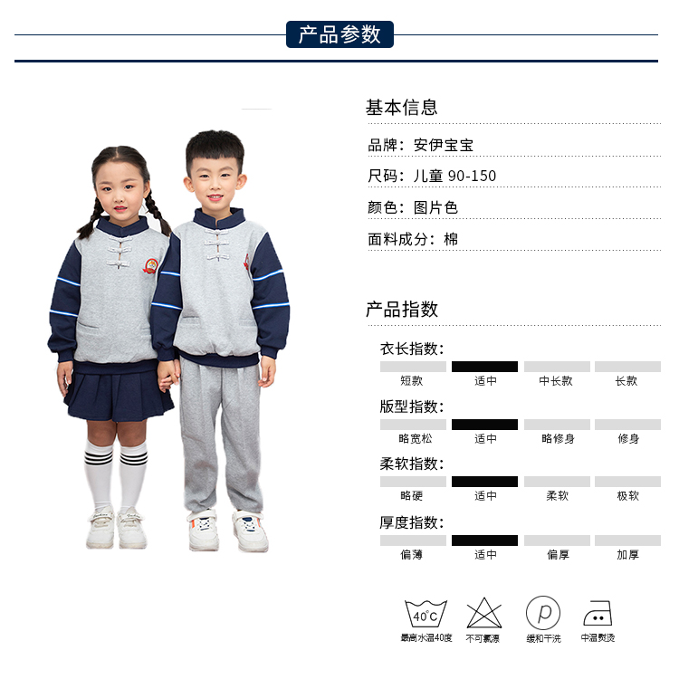 广州市菁璐童装有限公司专业从事10余年,旗下有安伊宝宝品牌,集中幼儿园园服,小学生校服 书包,幼儿园床上用品及幼师服的研发设计。定制上等优质面料,确保园服不缩水、不变形、不起球、抗皱性强,厂内配备的面料检验设备我们提供专业的园服校服定制,可根据客户的个性化需求设计生产,欢迎广大客户来图来样定制。