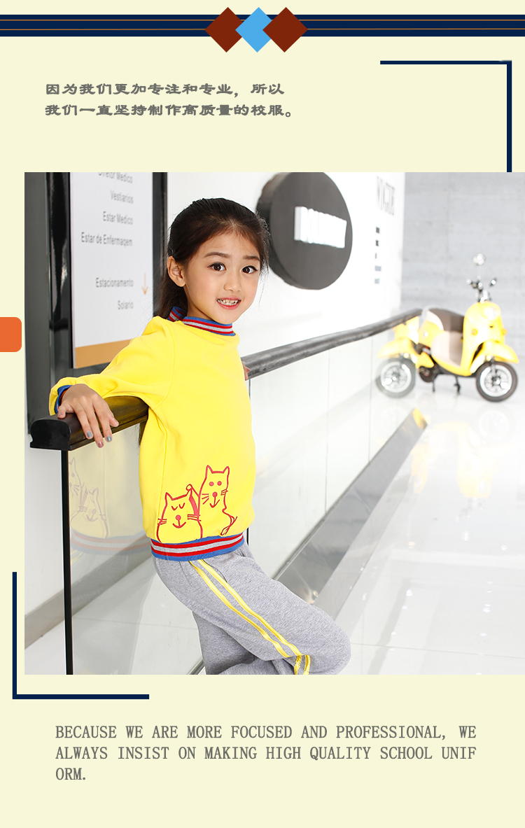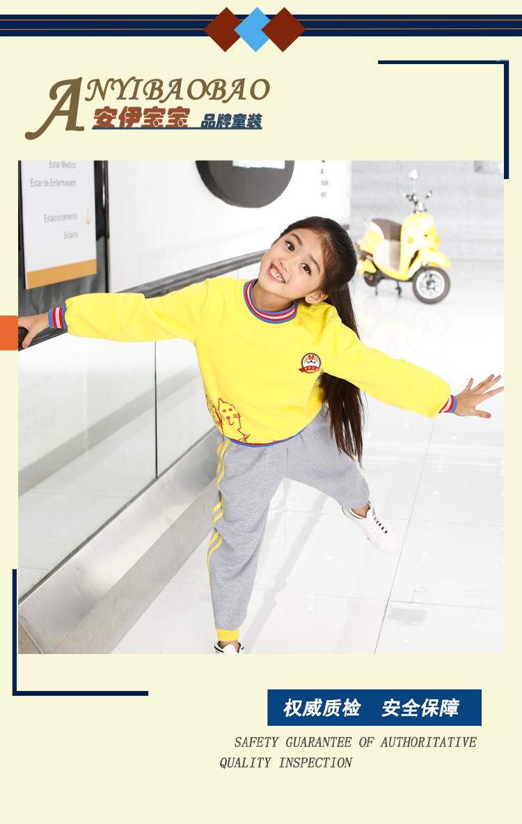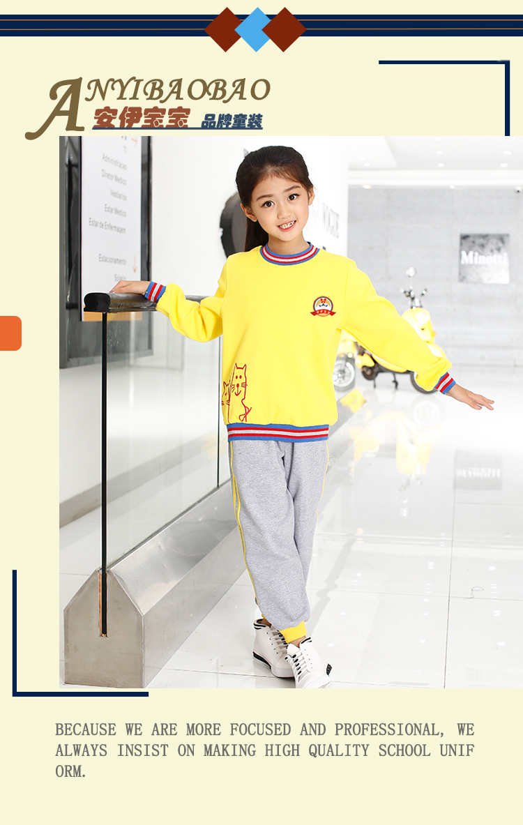 广州市菁璐童装有限公司专业从事10余年,旗下有安伊宝宝品牌,集中幼儿园园服,小学生校服 书包,幼儿园床上用品及幼师服的研发设计。定制上等优质面料,确保园服不缩水、不变形、不起球、抗皱性强,所有园服采用包边包缝的一线品牌工艺,增强耐撕裂强度。厂内配备的面料检验设备我们提供专业的园服校服定制,可根据客户的个性化需求设计生产,欢迎广大客户来图来样洽谈合作。