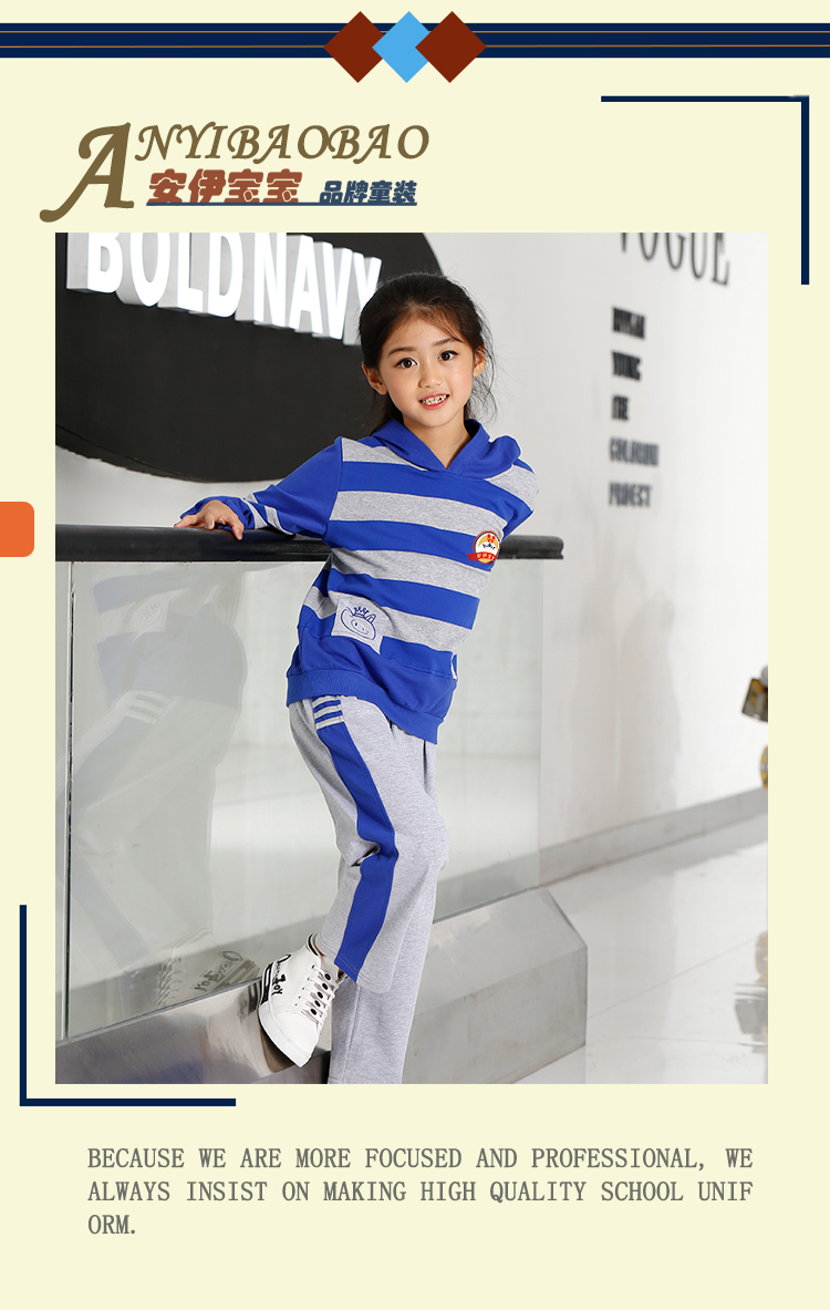 广州市菁璐童装有限公司专业从事10余年,旗下有安伊宝宝品牌,集中幼儿园园服,小学生校服 书包,幼儿园床上用品及幼师服的研发设计。定制上等优质面料,确保园服不缩水、不变形、不起球、抗皱性强,所有园服采用包边包缝的一线品牌工艺,增强耐撕裂强度。厂内配备的面料检验设备我们提供专业的园服校服定制,可根据客户的个性化需求设计生产,欢迎广大客户来图来样洽谈合作。