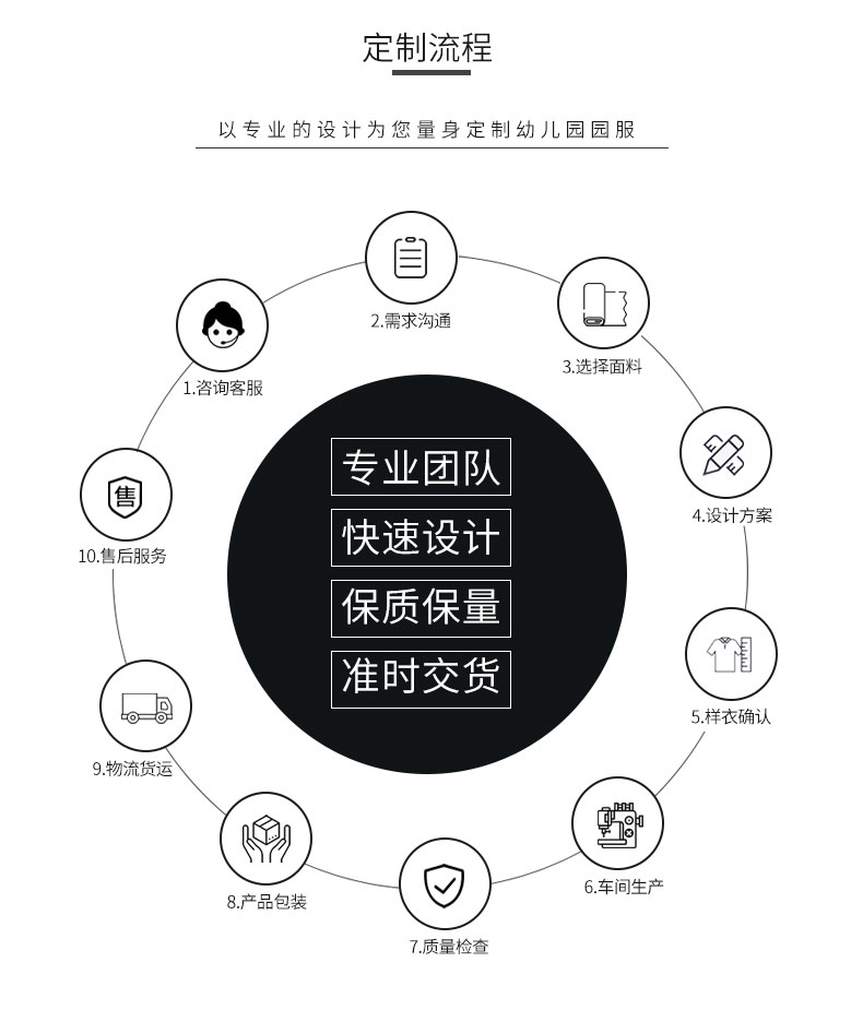 广州市菁璐童装有限公司专业从事10余年,旗下有安伊宝宝品牌,集中幼儿园园服,小学生校服 书包,幼儿园床上用品及幼师服的研发设计。定制上等优质面料,确保园服不缩水、不变形、不起球、抗皱性强,所有园服采用包边包缝的一线品牌工艺,增强耐撕裂强度。厂内配备的面料检验设备我们提供专业的园服校服定制,可根据客户的个性化需求设计生产,欢迎广大客户来图来样洽谈合作。