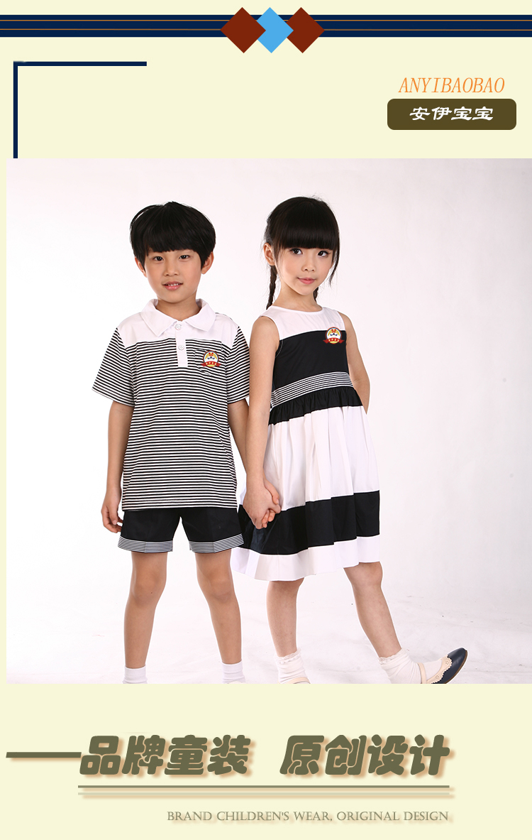 广州市菁璐童装有限公司专业从事10余年,旗下有安伊宝宝品牌,集中幼儿园园服,小学生校服 书包,幼儿园床上用品及幼师服的研发设计。精选上等定制优质面料,确保园服不缩水、不变形、不起球、抗皱性强,所有园服采用包边包缝的一线品牌工艺,增强耐撕裂强度。厂内配备的面料检验设备我们提供专业的园服校服定制,可根据客户的个性化需求设计生产,欢迎广大客户来图来样洽谈合作。
